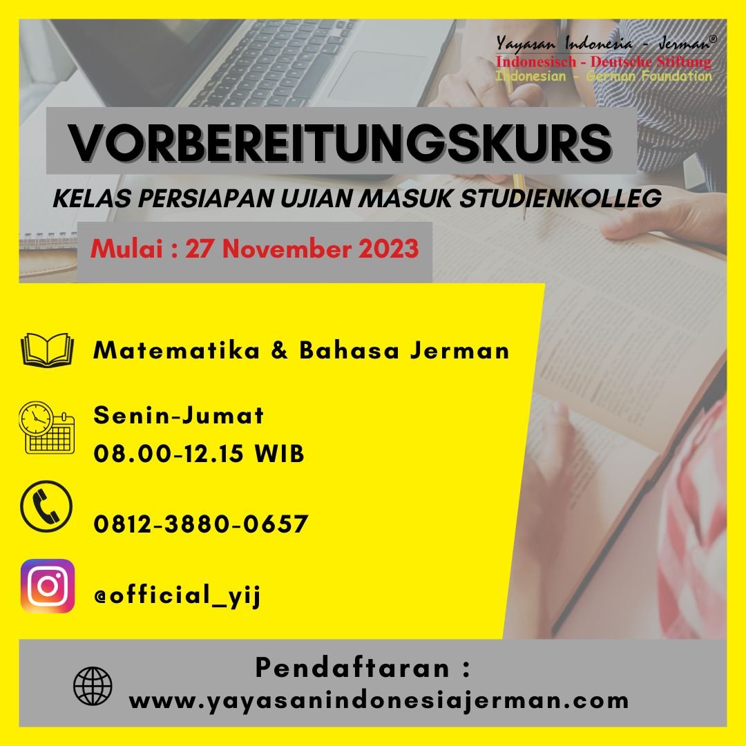 Hi semua! kami kembali membuka kelas persiapan ujian masuk Studienkolleg loh! yuk gabung dan persiapkan dirimu sebaik-baiknya!