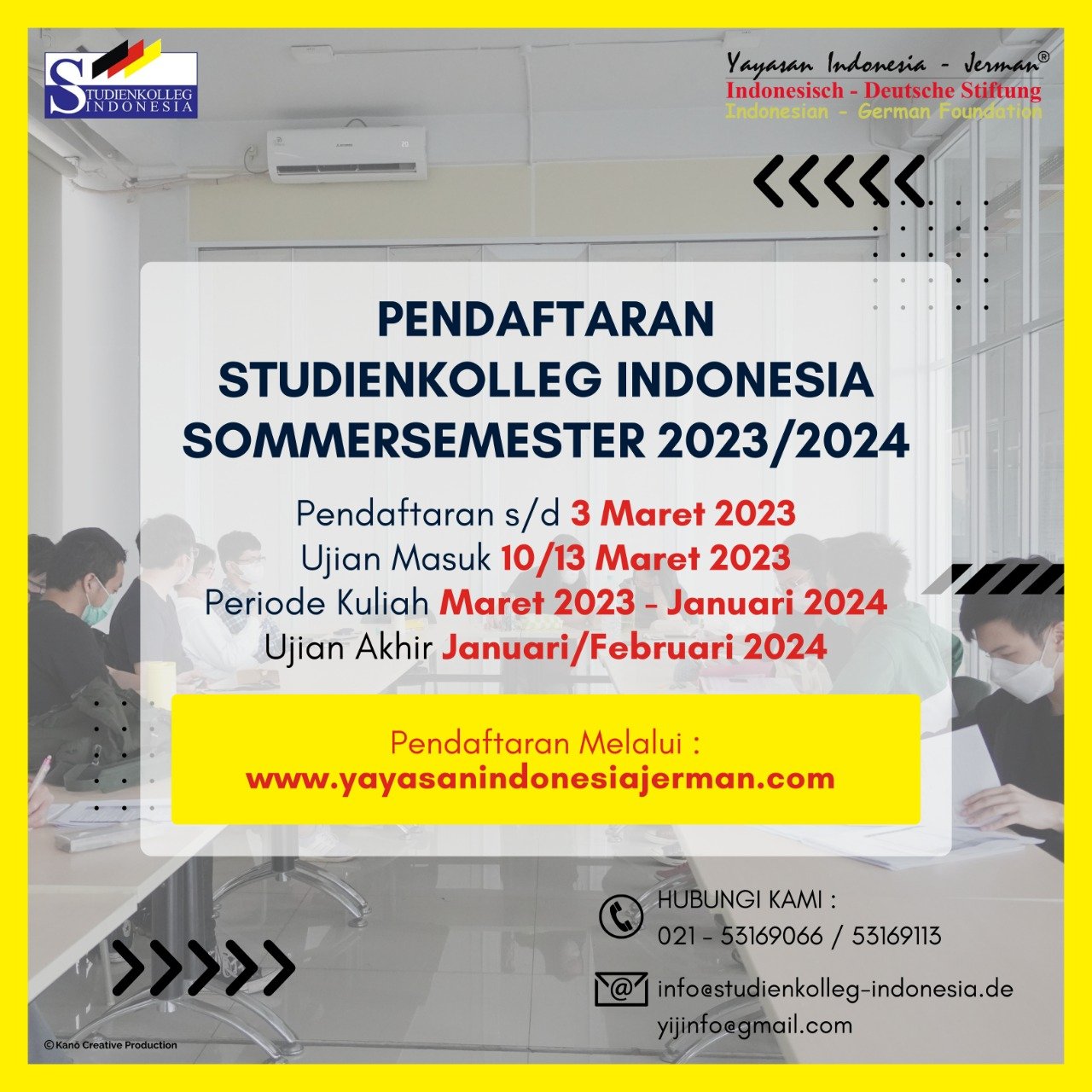 Halo! berikut ini jadwal dan pendaftaran Studienkolleg Indonesia untuk Sommersemester 2023-2024! jangan sampai terlewat ya!