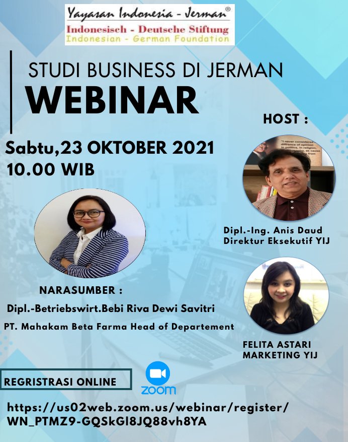 Halo! kami kembali mengadakan Webinar dengan tema Studi Business di Jerman! yuks ikutan! jangan sampai ketinggalan!