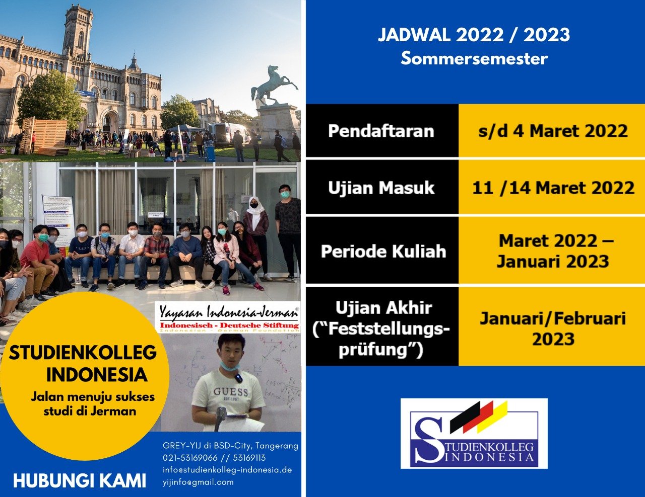 Halo! Berikut ini Jadwal Studienkolleg Indonesia untuk Sommersemester 2022! don’t miss it!